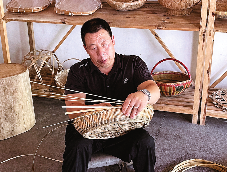 如今,他的工作室里不仅陈列着30多种竹编制品,还特意留出一块区域,展示竹编工具和制作流程。“我想让更多人了解竹编,知道这门手艺是咋来的。”彭海潮说。
