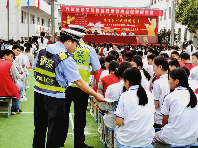 九月九日,丹凤县竹林关司法所干警走进竹林关中学开展以“关注人际交往,培养健康身心”为主题的法治教育宣传活动,现场以案说法为全校师生送去“法治教育第一课”。