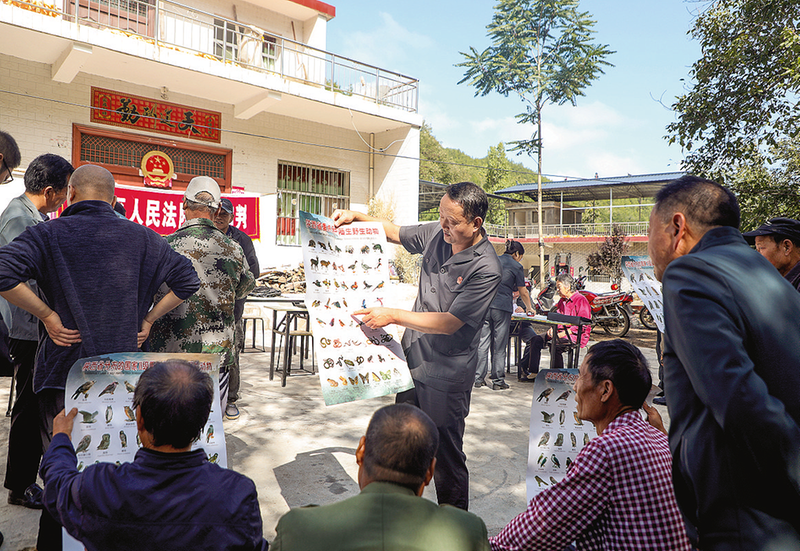 9月9日,商州区人民法院行政庭在麻街镇开展鸟类保护宣传活动。干警们通过发放资料、现场讲解等方式,向群众普及鸟类保护法律法规与生态环境保护知识,引导群众增强护鸟意识,助力守护生物多样性,现场氛围热烈,群众积极参与互动。 (本报通讯员 程庭颖 摄)