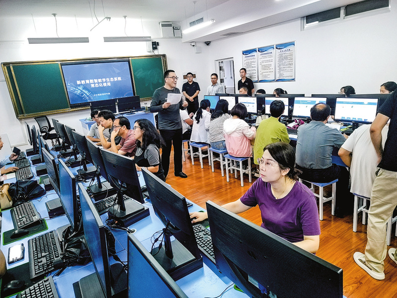 9月3日,镇安中学教师正在电脑前批阅学生作业。新学年开始,镇安中学在高一年级推行学生无纸化作业,学生作业通过电脑提交后,教师在后台电脑批阅反馈,方便快捷的同时,也能为学生针对性地布置个性化作业,有效优化了传统作业的弊端。 (本报通讯员 杨建东 摄)