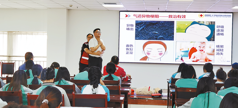 9月11日,市红十字会联合商洛职业技术学院举办以“学急救——守护校园安全”为主题的应急救护知识普及培训活动。参训学员通过理论讲解、实操演示和分组练习,逐步掌握了心肺复苏、自动体外除颤器使用和止血包扎、骨折固定等院前急救的关键技术。参训学员通过考核后获得培训证书,成为掌握急救技能的红十字志愿者。 (本报记者 杨 鑫 摄)