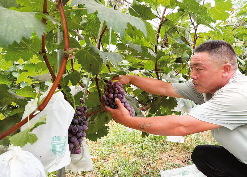 立足土壤湿润、光照充足的优势,黑沟河村确定“葡萄为主、樱桃和仙桃为辅”的产业定位,通过引进优质种苗、建立育苗基地、开展嫁接改良,推动产业向“规模化、品牌化”转型。同时,村里盘活撂荒地、升级产业大棚,创新采用“入股联营、土地流转、租赁经营、劳务承包、代管服务”的“五型联结”模式,建成集“生产—储存—销售”于一体的现代农业园区,成功打响“黑沟河葡萄”品牌。