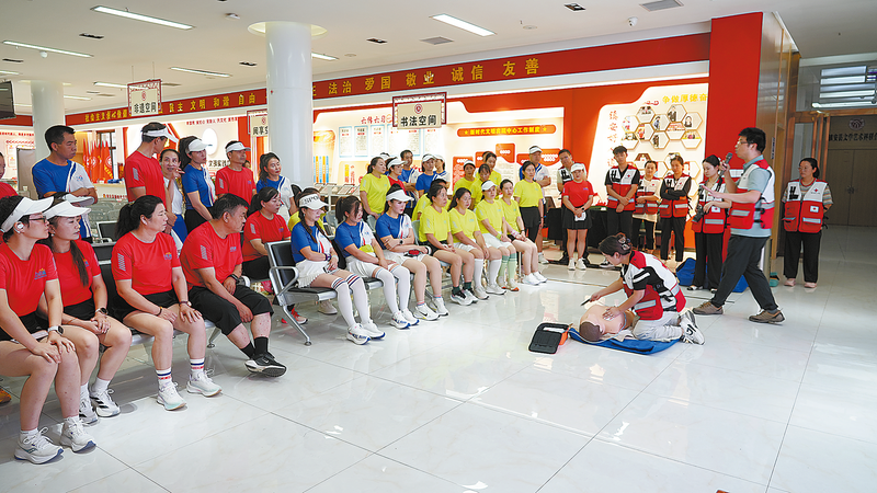 9月13日,镇安县举行“守护生命 你我同行”急救知识普及系列活动,参加活动人员认真学习红十字运动知识、救 护新概念和心肺复苏理论及实操,并利用模拟人进行心肺复苏完整操作流程。 (本报通讯员 朱龙喻 摄)