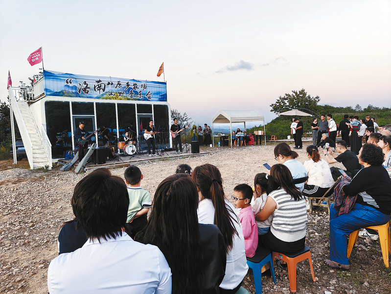 九月十四日晚,洛南原乡农场山野音乐会在麻坪镇陈台村的原乡七间房举行,观众沉浸式体验了一场充满地域特色的“听觉盛宴”。近年来,洛南县深挖本土文化资源,积极推动农文旅融合发展,将资源优势转化为发展优势。 (本报通讯员 毕波波 摄)