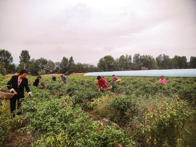 9月17日,洛南县古城镇中联村群众在采摘辣椒。该村种植辣椒120亩,今年预计收获辣椒36万公斤,增收96万元。 (本报记者 贾书章 摄)