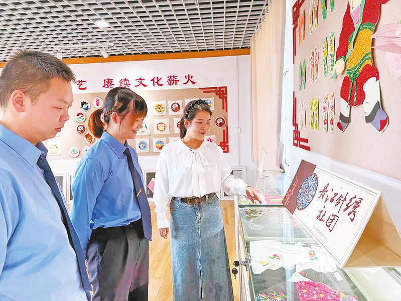近日,商南县检察院干警走进丹江绒绣非遗工坊,针对工坊面临的传承断层与知识产权保护难问题,为传承人普及指导留存创作底稿、登记作品版权相关法律,并联合文旅部门、工坊建立“检察+文旅+传承人”机制,通过法治守护非遗。(本报通讯员 吴 京 摄)