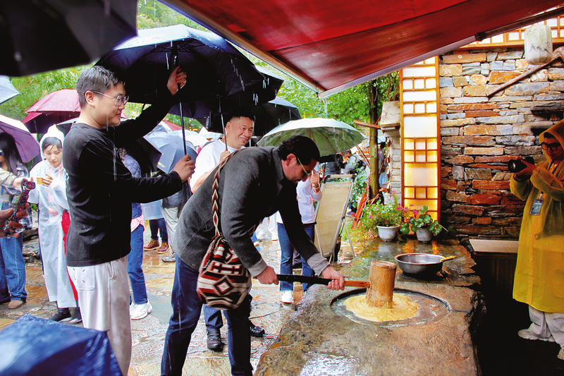 裹着洋芋香气扑面而来。哥伦比亚诗人赫尔曼·帕尔多在村民手把手的指导下,抡起木锤捶打着石臼中的芋泥,笨拙又认真的模样,引得周围发出阵阵欢快的笑声。