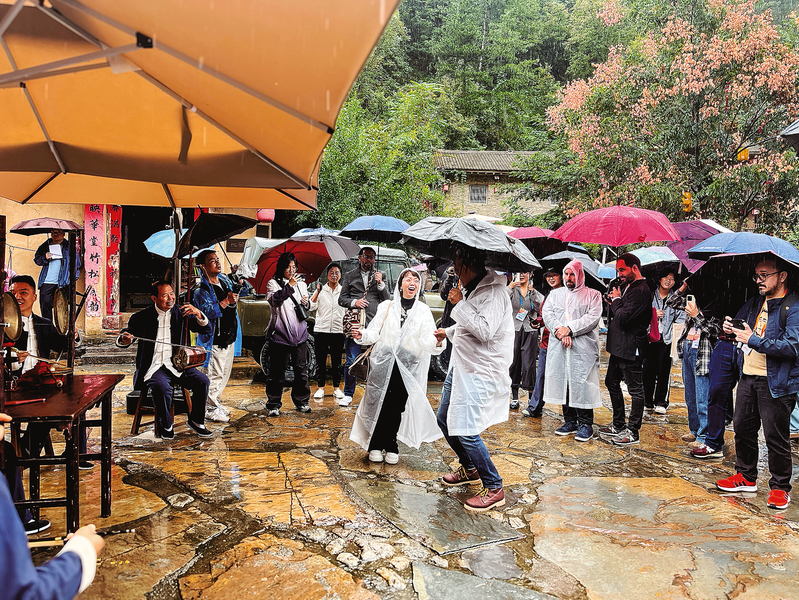 在国家级非遗“洛南静板书”小剧场前,拉美诗人跟着婉转绵长的旋律起舞。