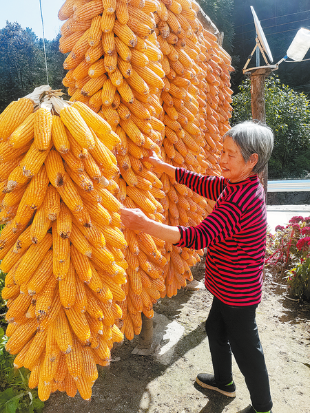 △9月13日,秋阳正好,商州区杨斜镇松云社区的居民纷纷在自家院中晾晒玉米,金黄的玉米装点庭院,尽显丰收好光景。