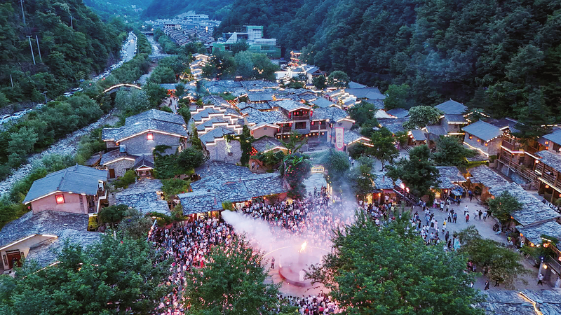 不远处,工作人员忙着搭建舞台,现代灯光与传统石板民居交相辉映。一场“月圆三秦 欢聚终南”全国中秋主题文化活动即将在这片土地上演。