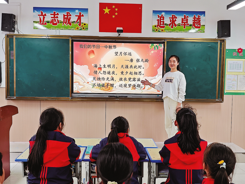 与此同时,几百公里外的商南县第五小学教室里,稚嫩的童声齐声吟诵着苏轼的《水调歌头》: