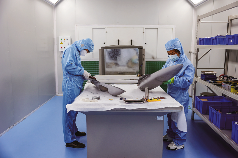 近年来,丹凤县紧抓低空经济发展机遇,积极培育以陕西中天禹辰航空智能科技有限公司为代表的高端无人机制造产业龙头企业,推动区域经济向高端化、智能化、集群化迈进。图为近日在中天禹辰生产车间,工人正对无人机配件进行打磨。 (本报记者 李 敏 摄)