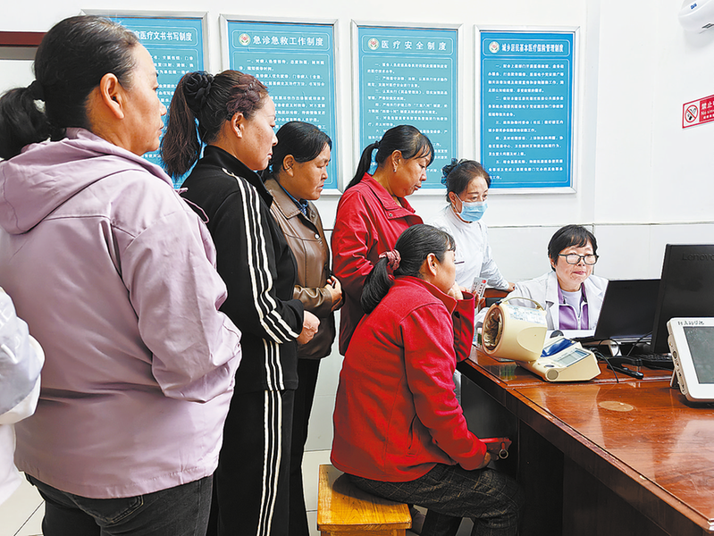 10月10日,商州区妇幼保健院医护团队走进杨峪河镇楚山社区,为适龄妇女免费开展“两癌”(宫颈癌、乳腺癌)筛查,将健康服务送到群众家门口,推动“两癌”早筛早治。图为医护人员正在为前来筛查的群众登记信息。(本报记者 马 姜 摄)