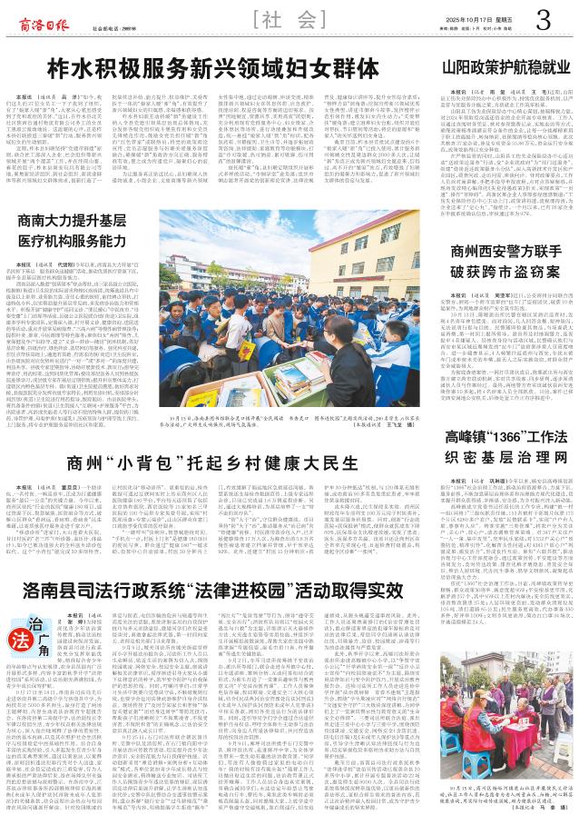 本报讯 (记者 巩琳璐)今年以来,镇安县高峰镇创新推行“1366”社会治理工作法,推动治理资源整合、力量下沉、服务前移,不断加强基层治理体系和治理能力现代化建设,切实提升群众获得感、幸福感、安全感,为乡村振兴注入新动能。