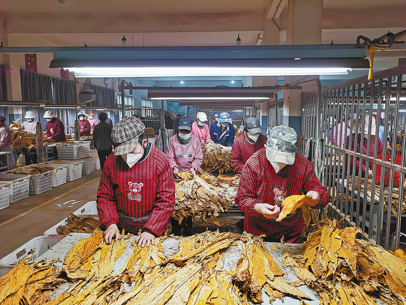 10月23日,镇安县大坪烟叶工作总站内一派繁忙景象,工人们正熟练地对烟叶进行分级、挑选。据了解,今年该站烟叶收购量达1.5万担,总产值约6000万元,带动周边60多名群众就近就业,人均日收入140元。