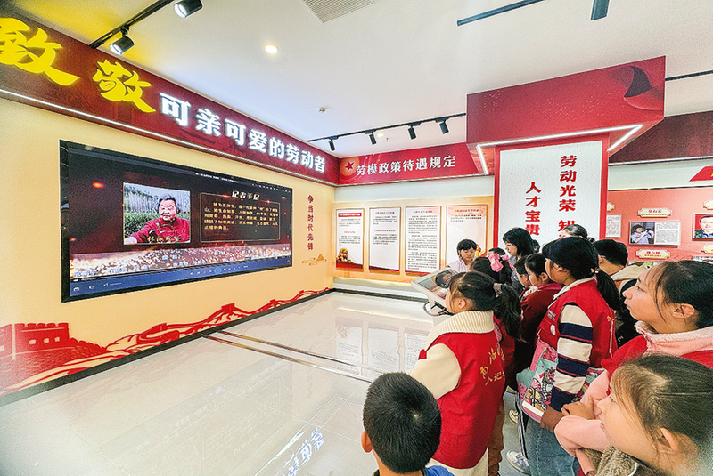 最让现场气氛热烈的,当属在“致敬可亲可爱的劳动者”区域观看影像资料。全国劳模张淑珍数十年如一日扎根山区,为茶农脱贫致富奉献一生;张丹英在平凡岗位上精益求精,铸就不凡业绩。她们的事迹,让大家感受到了平凡岗位上的伟大坚守,深刻领悟了“爱岗敬业、争创一流、艰苦奋斗、勇于创新、淡泊名利、甘于奉献”的劳模精神内核。只见小记者纷纷拿起笔记本,郑重地记下一个个劳模的姓名。“以前知道全国劳模,今天才发现,榜样就在我们身边。”小记者李沐珂说,“这次活动很有意义,我不仅学到了历史知识,更被劳模们的故事打动。以后我要学习他们坚韧不拔的精神,将来也能为社会贡献自己的力量。”