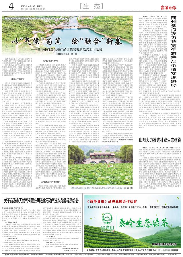 商洛市通过将优质气候资源融入各个行业领域,使曾经“养在深闺”的绿水青山,逐渐化为康养之都的灯火、碳汇交易的数字和旅人脸上的笑意。(转自《中国财经报》2025年10月24日6版)