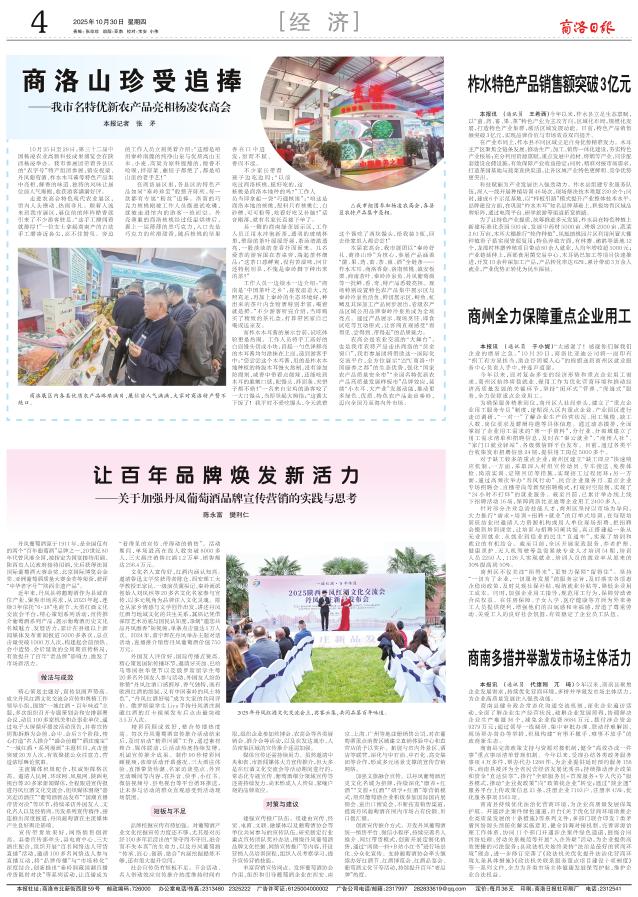 10月25日至29日,第三十二届中国杨凌农业高新科技成果博览会在陕西杨凌举办。我市参展团带着各县区的“农字号”特产组团参展,镇安板栗、丹凤葡萄酒、柞水木耳酱等特色产品集中亮相,鲜香的味道、独特的风味让展位前人气爆棚,收获游客满满好评。