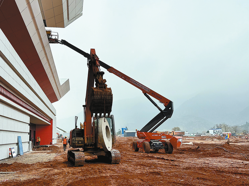 作为西十高铁商洛西站核心配套工程的重要组成部分,站前广场正加快建设,助力商洛加速迈入高质量发展的“高铁时代”。图为11月4日商洛西站站前广场施工现场,各个环节正有条不紊地推进中。 (本报记者 谢 非 摄)