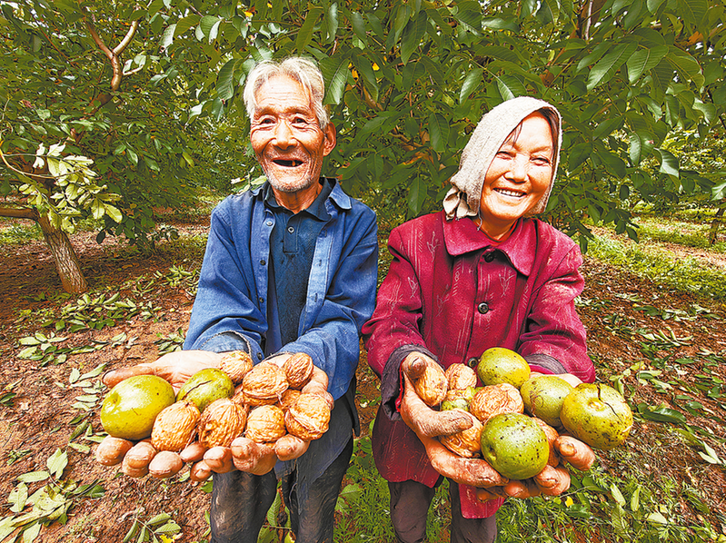 小小的核桃,在岁月变迁中更添新章。1958年,毛泽东主席“商洛每户种一升核桃”的号召,如春雷唤醒沉睡的山林。从此,零星散布的核桃树连缀成无边绿海,漫山遍野的核桃林成为商洛新名片。当地林业谚语“百株核桃十五年,赛过百亩好良田”,道尽核桃对商洛百姓的分量——它是山林的馈赠,更是撑起山民生计的支柱。