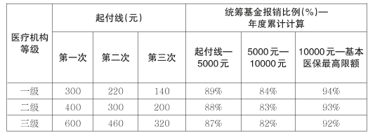 注:退休人员报销比例提高2%。城镇职工基本医保年度最高支付限额为10万元。