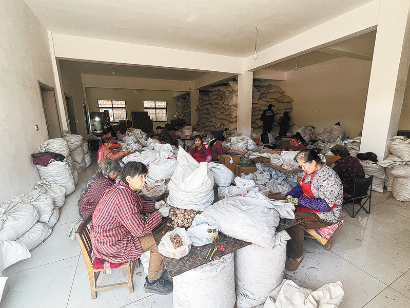 11月13日,群众在洛南县麻坪镇麻坪街社区加工核桃仁。据了解,该核桃仁加工厂由本地客商韩秤娃创办,带动周边30多名群众就近务工。 (本报记者 杨 鑫 摄)