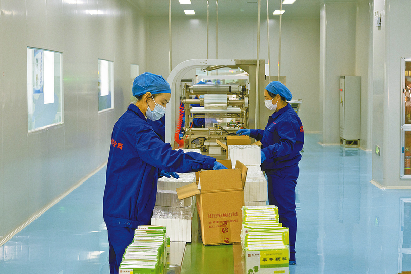 11月21日,在丹凤县新雨丹中药材科技食药园生产车间里,工作人员正在打包道地药材制成的药剂产品。该园区集中药材种植加工、制剂研发、医械制造、科普研学于一体,提供就业岗位400多个。 (本报记者 党率航 摄)