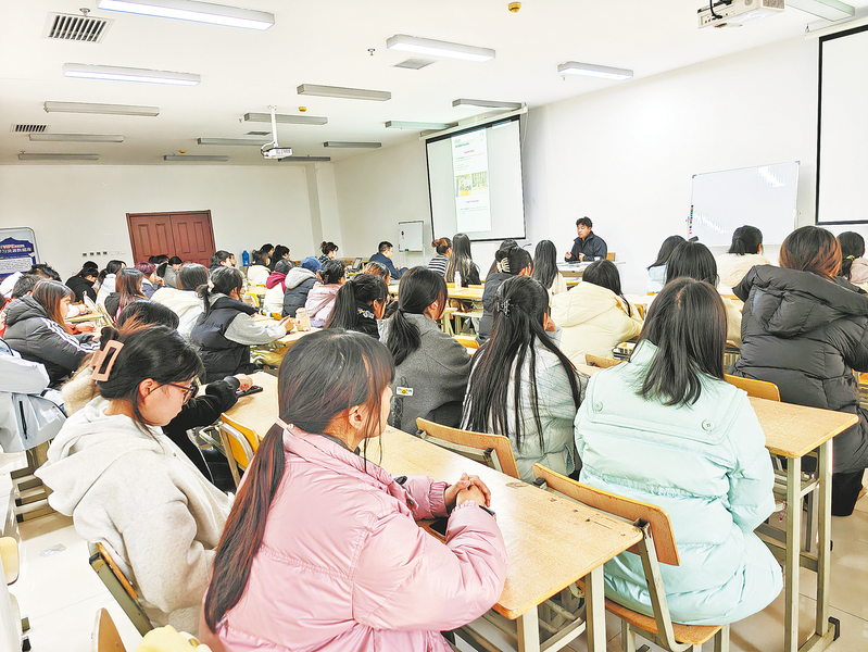11月27日,团市委在商洛职业技术学院开展2025年U15世界中学生排球锦标赛志愿者培训,通过强化外语口语与接待礼仪指导,全力做好赛事服务保障工作。 (本报记者 马 姜 摄)