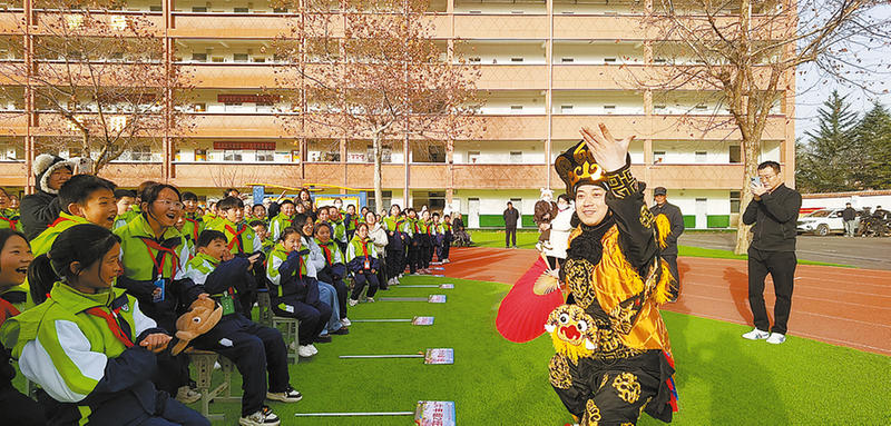 11月26日,陕西省戏曲研究院“戏曲进乡村”暨“文化进万家”惠民 演出走进洛南仓颉九年制学校,演员的精彩表演引得学生连连称赞。“演员唱功扎实,而且唱的都是咱爱看的戏,看得过瘾得很!”“能近距离欣赏省戏曲研究院老师高质量的专业演出,太开心了!”……11月26日,陕西省戏曲研究院“戏曲进乡村”暨“文化进万家”惠民文艺演出相继走进洛南县四皓街道阳光庭园社区和洛南仓颉九年制学校,随着《屠夫状元》《群英会》《戏曲绝技变脸》等秦腔经典剧目的接连上演,铿锵激昂的旋律和现场掌声、叫好声此起彼伏,将现场气氛推向高潮。
