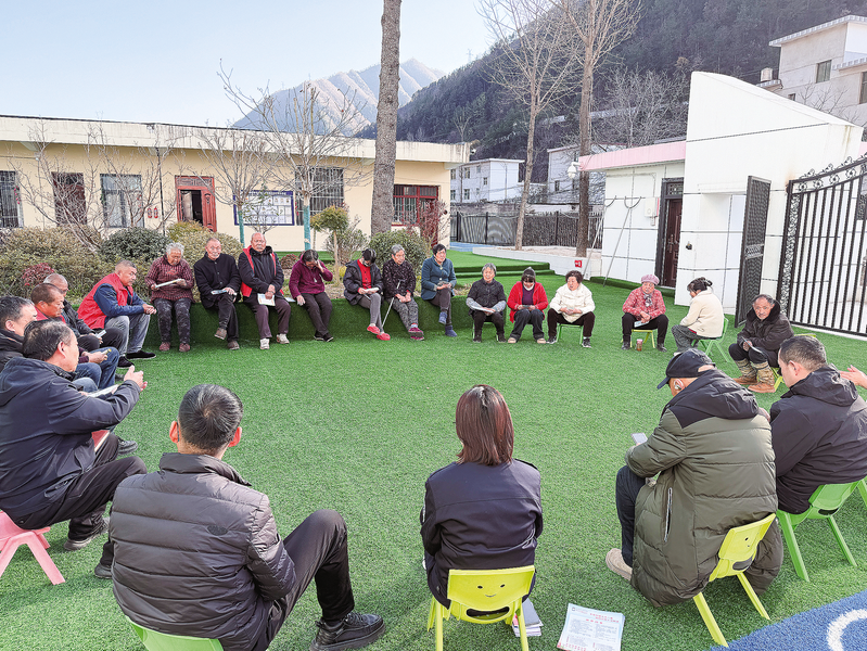 11月22日,柞水县小岭镇司法所干部走进李砭村,与村民围坐一起,开展了一场接地气的政策宣传活动。工作人员通过“拉家常”的方式,用通俗易懂的语言向村民讲解平安建设的具体内容与重要意义,包括防范诈骗、化解矛盾纠纷、维护社会治安、加强法律知识普及等方面,引导村民共同参与平安乡村创建。 (本报记者 朱良娜 摄)