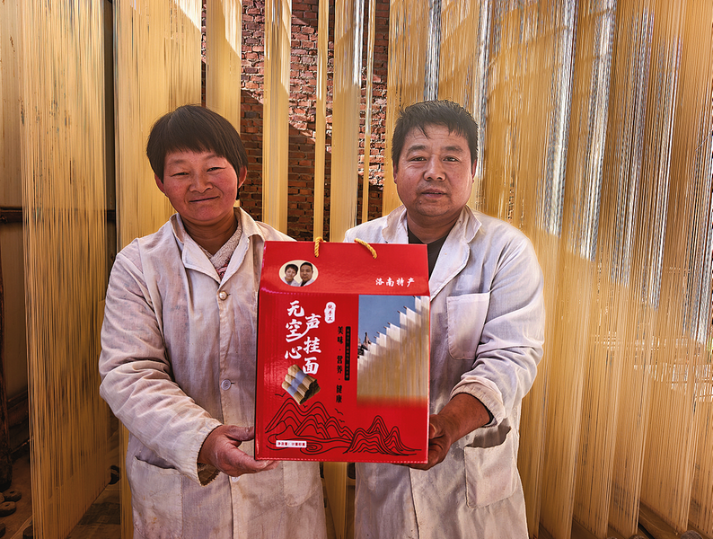 张益和郭军盈紧跟时代发展,制作包装盒,把自己的挂面起名为“无声空心挂面”。