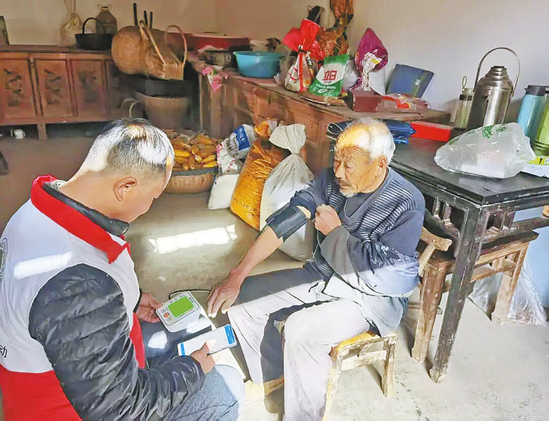 为进一步做细做实家庭医生签约服务,切实提升群众健康获得感和满意度,近日,山阳县法官镇卫生院组织家庭医生签约服务团队开展家医入户随访工作,把专业医疗服务和暖心关怀送到群众家门口。 (本报通讯员 杨枝烨 摄)