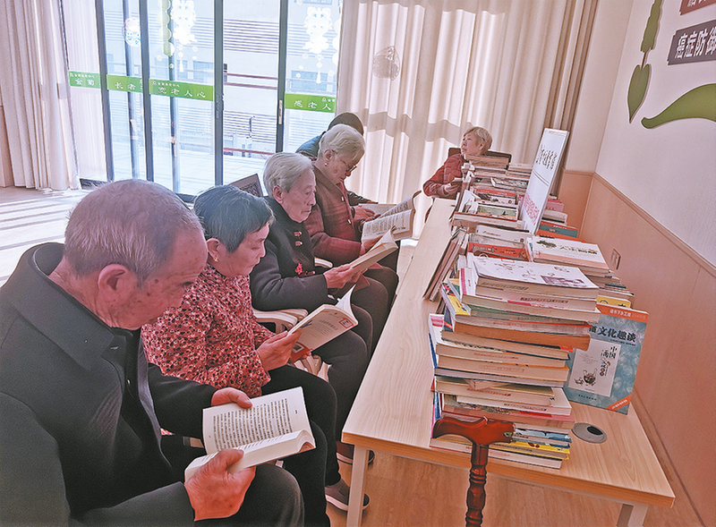 12月4日,商州区文旅局组织区图书馆走进陕西金菊养老中心,开展“敬老捐书行 温情伴夕阳”志愿服务活动,现场捐赠图书600余册,让老人们在书香浸润中丰富精神文化生活。图为老人们正在养老中心书吧翻阅新赠的图书。 (本报记者 张 英 摄)