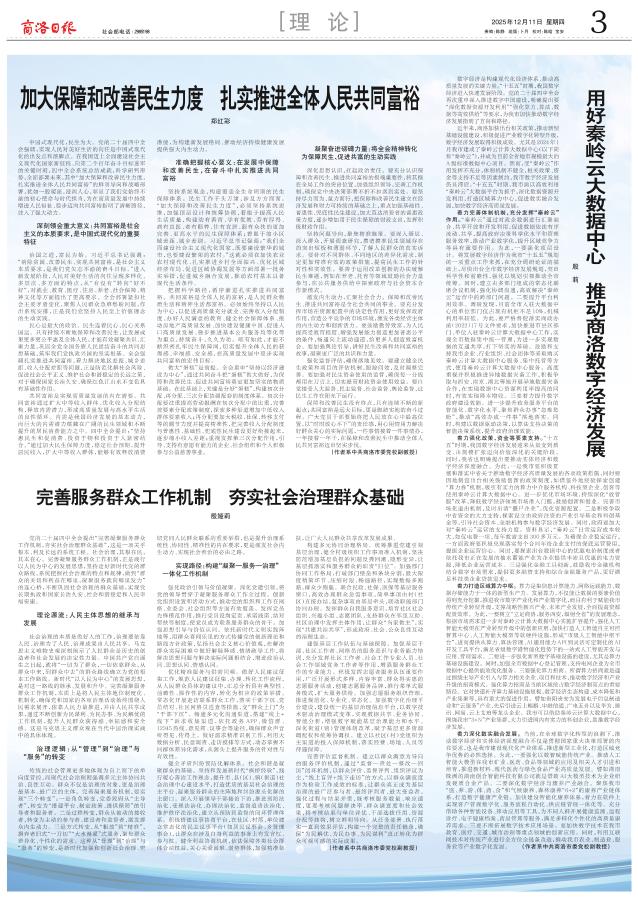 着力完善体制机制,充分发挥“秦岭云”作用。“秦岭云”通过对政企数据进行汇聚融合、共享开放和开发利用,促进数据依法有序流动、共享,提高政府决策科学化水平和管理服务效率,推动产业数字化,提升区域竞争力等具有重要作用。为此,一要强化顶层设计。将发展数字经济作为我市“十五五”规划的一项重点工作来抓,在充分调研论证的基础上,尽快出台全市数字经济发展规划,突出科学性和前瞻性,强化以规划引领推动全市统筹。同时,建立由多部门组成的常态化联席会议机制,强化协调沟通,高效解决“秦岭云”运营中的跨部门问题。二要提升平台利用效率。调研发现,目前全市入驻大数据中心的单位部门仅占现有机柜不足10%,机械利用率较低。为此,要严格督促落实商政办函﹝2022﹞17号文件要求,加快推进市县区部门、单位入驻秦岭云计算大数据中心工作,实现全市数据集中统一管理,为进一步实现数据的互通共享,打下坚实的基础。鼓励和支持我市企业、行业组织、社会团体等采取购买秦岭云计算大数据中心服务、集中托管等方式,使用秦岭云计算大数据中心服务。高度重视并积极推进异地数据灾备工作,积极争取与西安、南京、湖北等地开展异地数据灾备合作,在实现数据中心资源利用率提高的同时,有效实现降本增收。三要着力提升数字政府建设效能。进一步提升政务服务平台的智能化、数字化水平,聚焦群众办事“急难愁盼”,推动“高效办成一件事”落地落实。同时,构建以数据驱动决策,以算法支持决策的智能决策系统,提升政府治理效能。