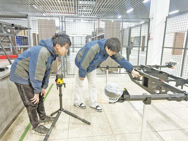 陕西国飞领翼科技有限公司拥有1万平方米生产车间及4个国家级实验室,具备整机自主研发制造能力,产品涵盖氢动力、电动多轴、垂直起降及百公斤级大载重无人机等,广泛应用于消防、林业、交通、应急、电力、环保等领域,是行业领先的民营科技企业。图为12月4日,该公司工作人员进行无人机机架静态平衡调试。 (本报记者 王孝竹 摄)本报讯 (通讯员 郭乾琪)“十四五”期间,商州区县域工业集中区管理委员会坚持园区承载、项目带动、产业支撑、集聚集约的发展思路,聚力打好园区建设提标扩容攻坚战,推动要素向园区集聚、项目向园区集中、产业向园区集群,构建了“一区多园”的总体布局。