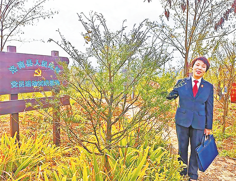 洛南县人民法院在“秦岭红豆杉司法保护基地”建起党员活动实践基地,定期组织党员参观实践,增强环境保护意识。图为11月28日,周梦琳介绍基地情况。 (陕西日报记者 郑 斐 摄)