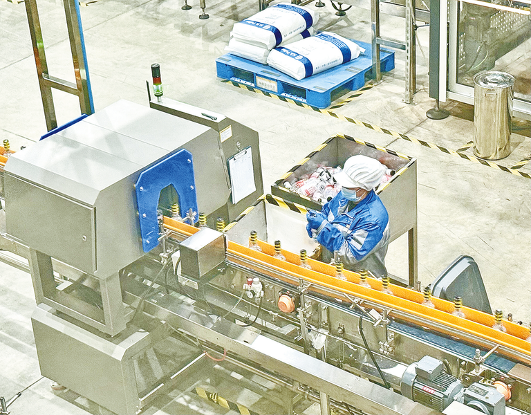 12月17日,在商洛国蜂蜜水产业园生产厂房内,工人正在检查产品包装。据了解,商洛国蜂蜜水产业园项目位于商洛高新区,通过链主带动、以商招商的方式,引进商洛国蜂蜂业科技有限公司(蜂蜜工厂)、陕西阳明至诚包装制品有限公司(瓶盖工厂)配套企业入驻园区,汇集了研发、原料、生产、质检、数据分析与物流配送等全流程产业环节,形成上下游全产业链。 (本报记者 王天彤 摄)