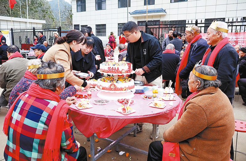 10月22日,石坡镇石羊村举行孝德主题实践活动。图为老人聚集 在一体过集体生日。