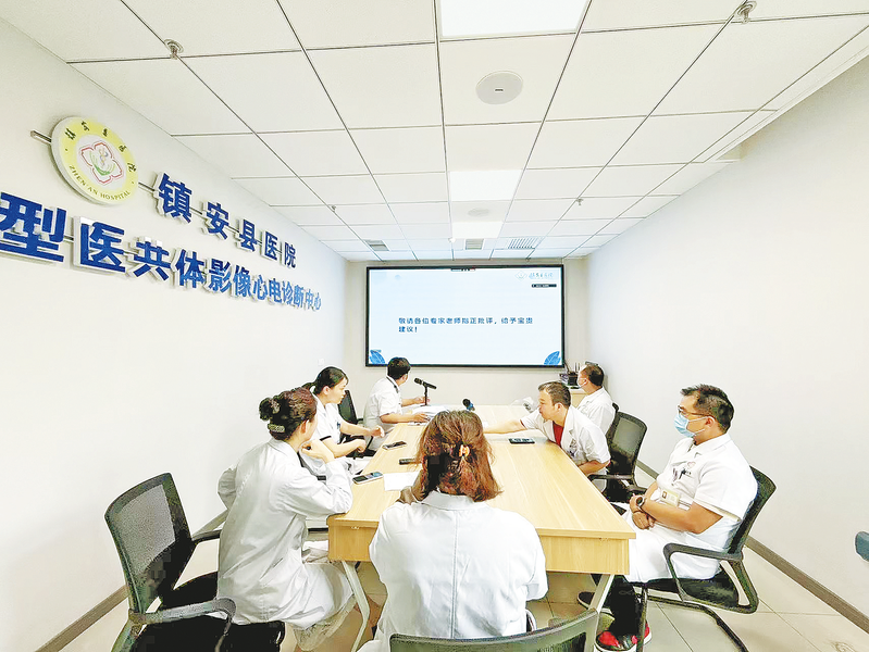 为了让心肌梗死患者能够早发现、早治疗,镇安县医院持续巩固国家胸痛中心建设成效,构建了全域覆盖的远程心电会诊体系,将优质诊疗资源延伸至乡镇一级。如今,乡镇卫生院的心电图检查结果,直接通过系统传输至县医院进行诊断,对危及生命安全的异常心电图,系统不仅进行提示,数字化中心的医务人员还会通过电话通知,形成心电图“乡(村)检查、县诊断救治”的远程医疗模式。目前,该系统累计检查5300多人次,及时有效救治较严重的心电图异常群众70多人,其中12名为心肌梗死患者。