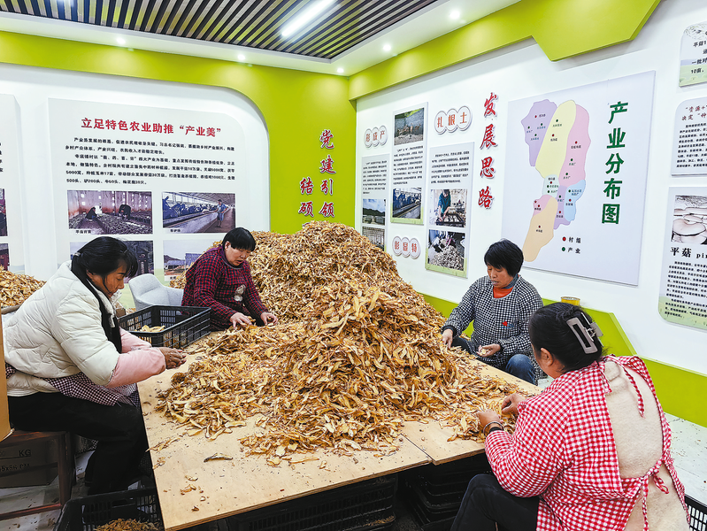 12月28日,务工群众在丹凤县铁峪铺镇寺底铺村天麻种植基地里分拣晾干的天麻片。据悉,该基地通过村集体经济合作社运营管理,今年为村集体经济增收15万元,同时,安置村民在家门口务工,增加群众收入。