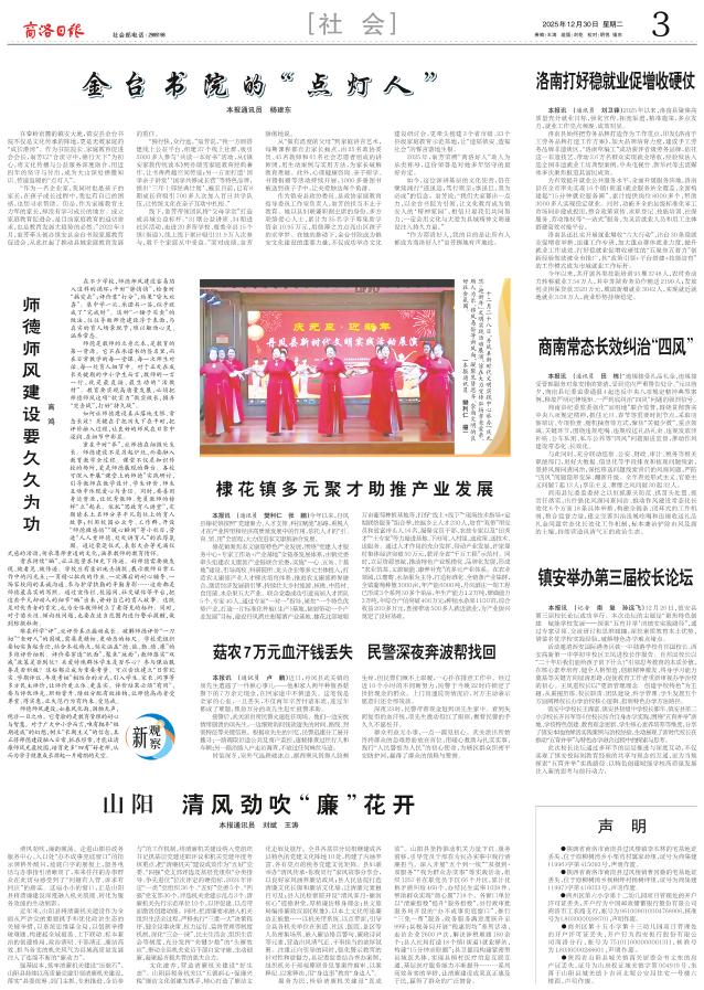 本报讯 (通讯员 刘卫锋)2025年以来,洛南县聚焦高质量充分就业目标,强化宣传,拓宽渠道,精准施策,多点发力,就业工作亮点频现、成效明显。