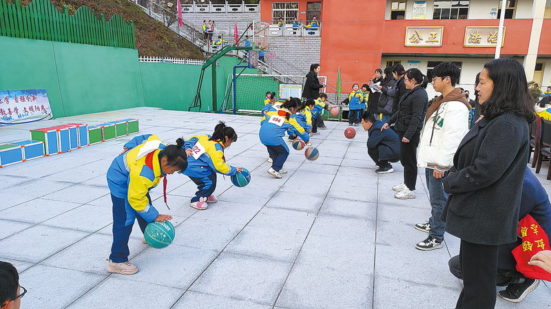 2025年12月28日,商南县城关第三小学举行趣味运动会。比赛项目包括拍小篮球、一分钟跳绳、背对背运球等,培养学生顽强拼搏、团结协作的精神,增强班级的凝聚力,加深学生之间的友谊,为创建和谐校园增添了风采。 (本报记者 南 玺 摄)