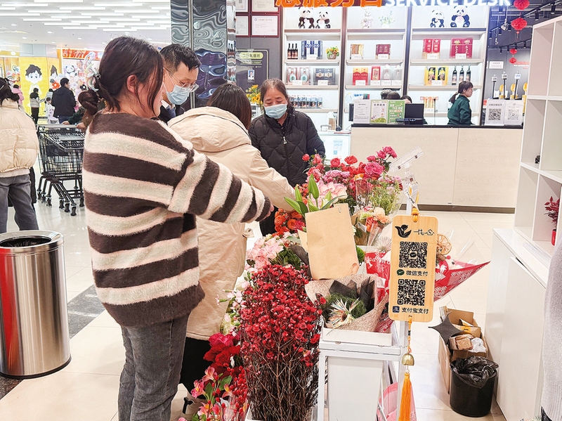 2025年12月31日,市民在开邻超市选购鲜花。 1月1日至3日的元旦小长假期间,我市恰逢雪天和降温天气,但严寒并未阻挡市民的消费热情,超市、商场、夜市等消费场景人气攀升,出租车行业提前部署保障运力,叠加超市、商场延长营业时间等暖心举措,多元消费业态协同发力,既满足了市民多样化的假日需求,也为新年伊始的假日经济注入强劲活力。