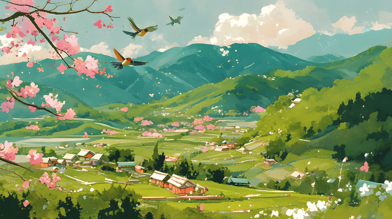 不远的田里,有人劳作累了,就会站起来伸直腰扯起嗓子吼上几句:“太阳落土又落坡,妹妹淘米慢慢搓,心想留哥吃顿饭,米筛关门眼睛多……”太阳还挂在早晨的山尖上,朦胧着一层清露的润泽,水润润的。山歌在朝阳下飘飞着,一直飘向了远处的山上。山上,一片草色蒙茸向远处,将天地都仿佛沁绿了,将空气也沁润成一种莹润的色泽,有一点点白色在天和山相交的弧线上缓慢地移动着,偶尔叫一声:“咩咩——”竟然是一群羊,在得意地炫耀着自己的兴奋。放羊孩子如一个个逗号,在天边粘着,一会儿又弹动着。