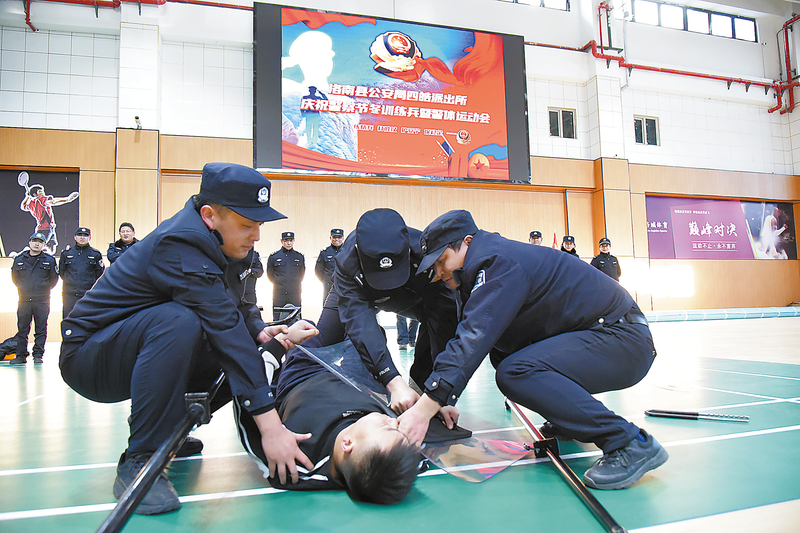 1月7日,洛南县公安局四皓派出所在县体育场举办庆祝警察节·冬训练兵·警体运动会,进一步丰富活跃警营文化生活,激发队伍活力,打造“活力警营”,推进精准练兵,提升基层公安队伍素质能力水平。(本报通讯员 李重立 摄)