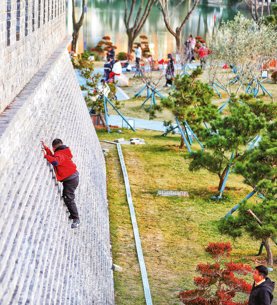 文明游玩,保护遗址。1月10日,有游客在位于市区莲湖公园西南侧的商州故城墙上肆意攀爬,存在一定的安全隐患。故城墙遗址见证了商州城防史与城市变迁,具有历史、考古与旅游价值,有关部门提醒游客文明游玩。 (本报记者 杨 鑫 摄)