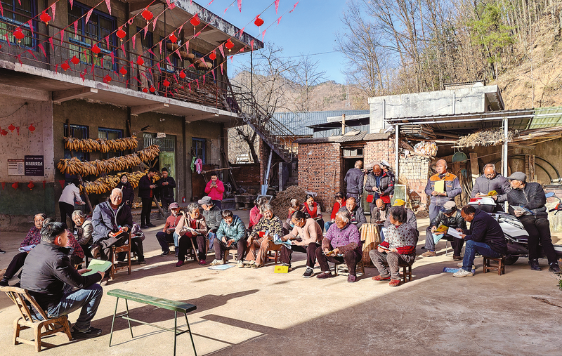 1月16日,丹凤县铁峪铺镇桃花村苏沟组召开院落会,镇村干部以拉家常的形式把冬季用火用电、森林防火和道路交通安全等知识送进群众心坎里,筑牢基层安全防线。 (本报通讯员 田 东 摄)