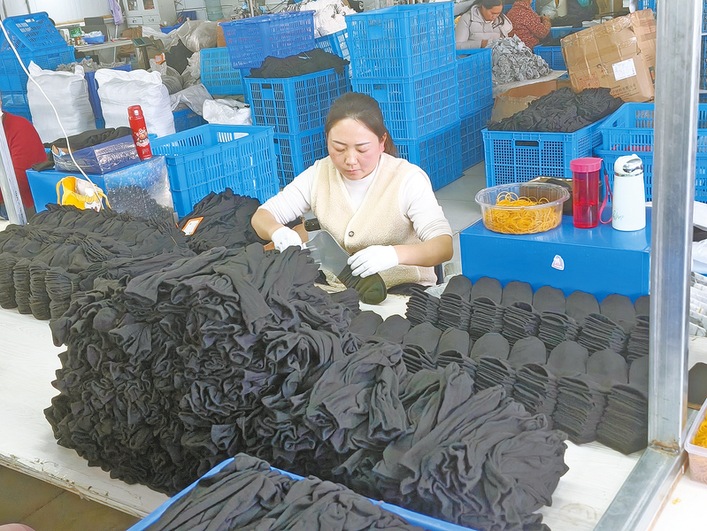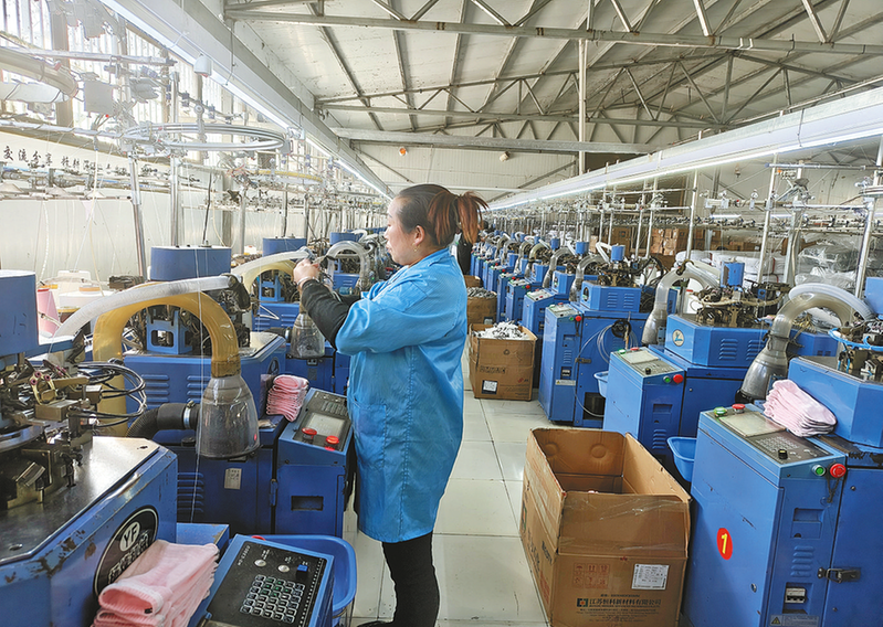 为了让务工人员尽快适应岗位,袜子厂还免费提供技能培训。针对不同工序的操作要求,安排技术骨干进行手把手教学,帮助务工人员快速掌握操作技能。同时,还建立合理的薪酬体系和激励机制,除了基础工资外,还设置全勤奖、绩效奖等,充分调动工人的积极性。“工厂的待遇很好,管理也很人性化,工作得很舒心。”缝头工王雪说,她家里有两个孩子,在袜子厂工作不仅收入稳定,而且工作环境好,领导和同事都很照顾她。