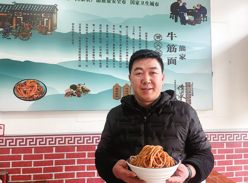 熊家牛筋面第二代传承人熊立接过接力棒,兢兢业业打理着小吃店。