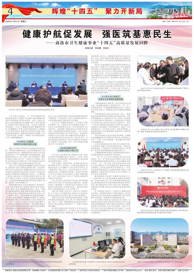 岁月不居,时节如流。当“十四五”规划的壮阔画卷徐徐收卷时,回望这5年,健康,无疑是镌刻在这段时光里最温暖、最坚实的印记。这是一曲由白衣执甲、众志成城谱写的生命赞歌,更是一部以改革破局、用情怀守望书写的民生篇章。在市委、市政府的坚强领航下,全市卫生健康系统高擎“健康商洛”旗帜,将“健康优先”深植于城市发展的脉络,以清晰的“1335”路径为指引,稳稳守护人民的生命安康,更在医疗服务能级提升、健康福祉普惠共享的道路上,留下坚实的足迹,为商洛“一都四区”的宏伟蓝图奠定了牢不可破的健康基石。